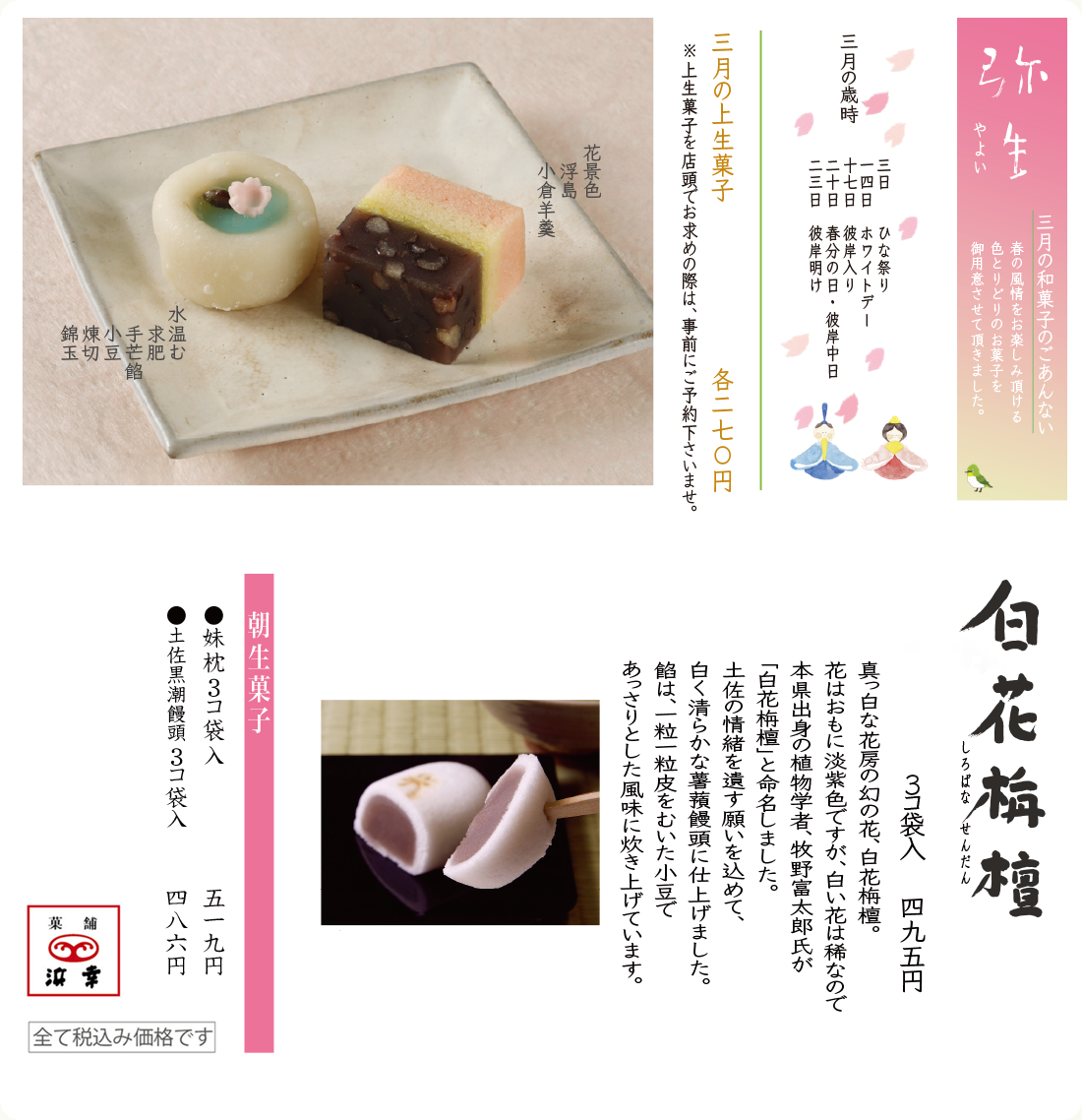 3月(弥生)の和菓子のご案内