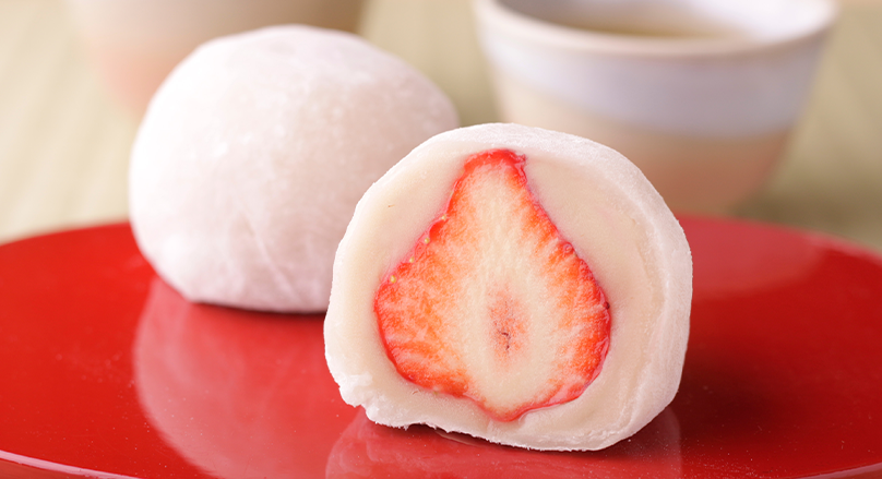 おいしいと人気の福岡県産あまおう苺。旬のあまおう苺を白あんとふんわりソフトな羽二重生地でやさしく包みました。